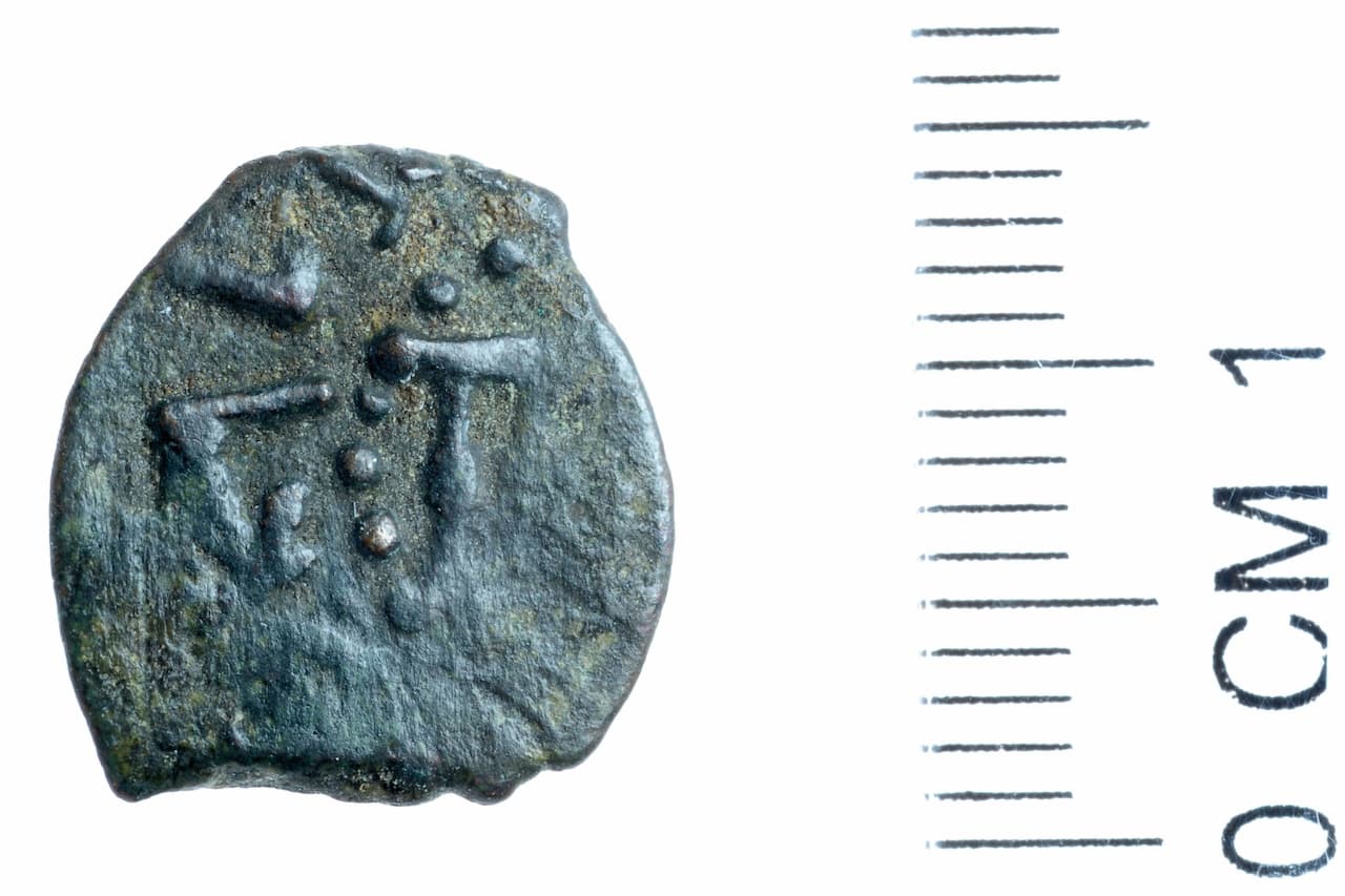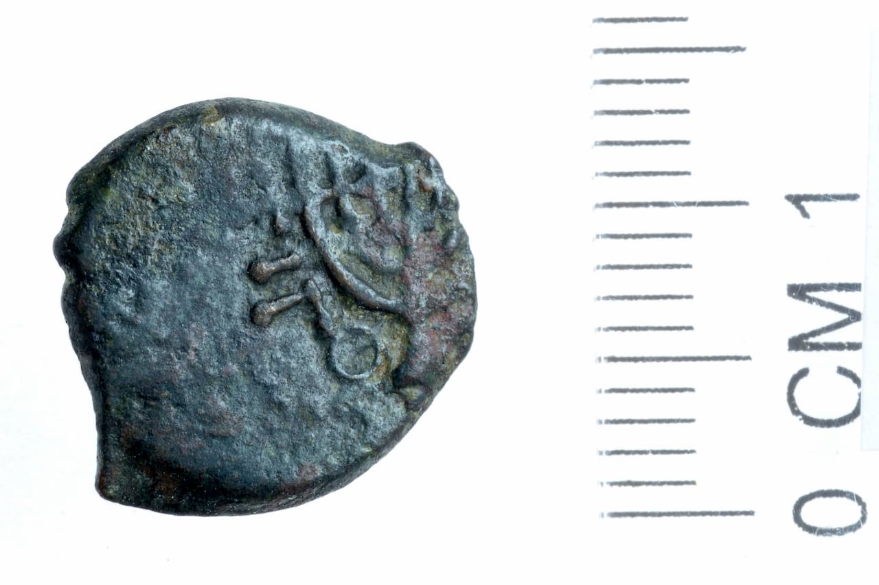 In the picture: A coin from the period of the Hasmonean King Mattathias Antigonus, bearing the image of the Temple candelabrum (Menorah). This is one of the earliest images of the Menorah known to archaeology.